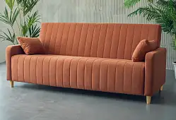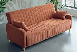 На страницах каталога представлены прямые диваны разнообразного типа – на ножках и плоском основании, с подлокотниками и без, укомплектованные мягкими подушками. Также вас порадует широкий выбор расцветок и материалов обивки моделей. Несмотря на доступную стоимость, все изделия соответствуют высоким стандартам качества.