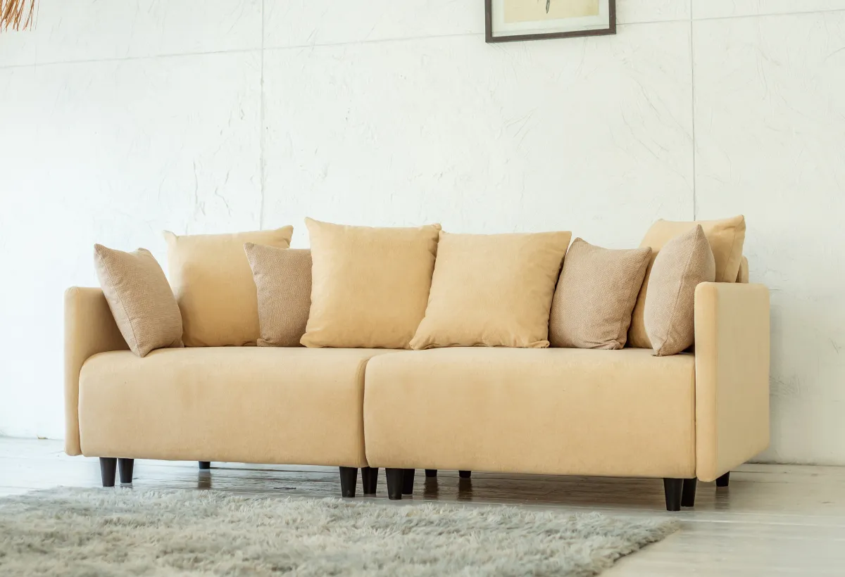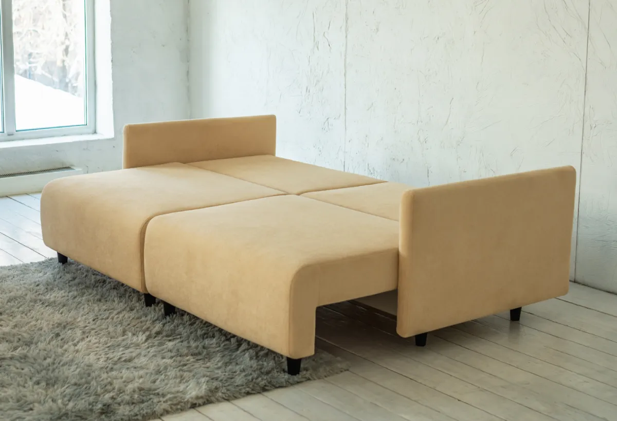Качество, которое чувствуетсяДиван выполнен из прочных материалов: каркас из сосновых брусков и ортопедическая пружинная основа гарантируют долговечность и комфорт. Обивка из прочного и приятного на ощупь материала не потеряет форму даже через годы использования. Подушки, наполненные гипоаллергенным материалом, не сминаются и не теряют форму. А ещё их можно вынуть из чехлов и постирать — это важно, когда в доме есть дети или животные. Все детали продуманы: от надёжного механизма трансформации до лаконичного дизайна без лишних деталей.